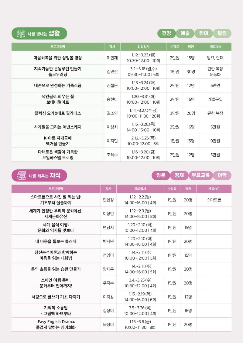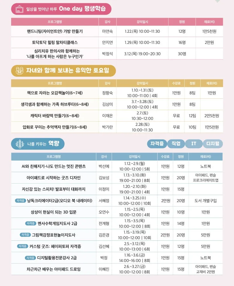 흥미롭고 다양한 강좌가 준비되어 있으니 많은 신청 바랍니다!