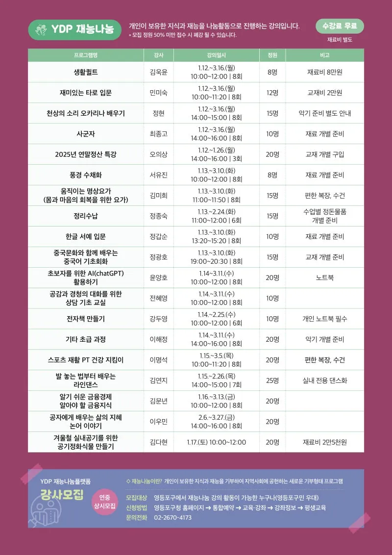#영등포구 #영등포평생학습 #YDP미래평생학습관 #수강생모집 #평생교육