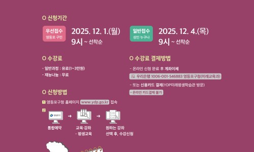 영등포 구민 우선접수 | 12. 1.(월) 09:00 ~ 선착순 모집