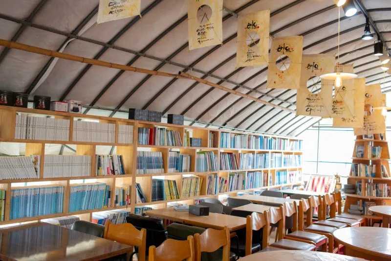 책 속의 문자가 자유를 얻고, 아이들도 더 이상 책에 갇히지 않으며, 읽어야 한다거나 읽혀야 한다는 구속에서 벗어나 자유로운 상상의 세계를 만끽할 수 있다니 이곳에서 아이들은 어린 왕자처럼, 빨강 머리 앤처럼, 토끼뿐 아니라 강아지나 고양이, 하늘을 나는 새처럼 그저 내 마음대로다. 인연의 소중함을 뜻하는 수십 개의 연이 걸린 ‘읽지마 책방’도 호기심을 자극한다. 편안하게 책을 읽다가 나만의 책을 만들어 보기도 하고, 염색이나 등 만들기 체험을 할 수도 있고, 맷돌에 갈아서 내려 마시는 진한 커피 한 잔의 낭만도 즐길 수 있다. 책상 하나에 책꽂이 하나뿐인 작가의 방 위에 있는 전망대에 올라 계절마다 달라지는 멋진 풍경을 보며 지친 마음을 잠시 내려놓아도 좋다.