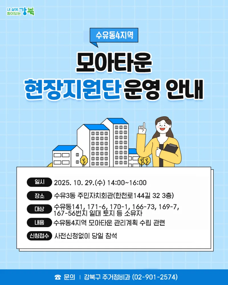 강북구 수유동4지역 모아타운 현장상담소 운영 안내(10. 29.)
