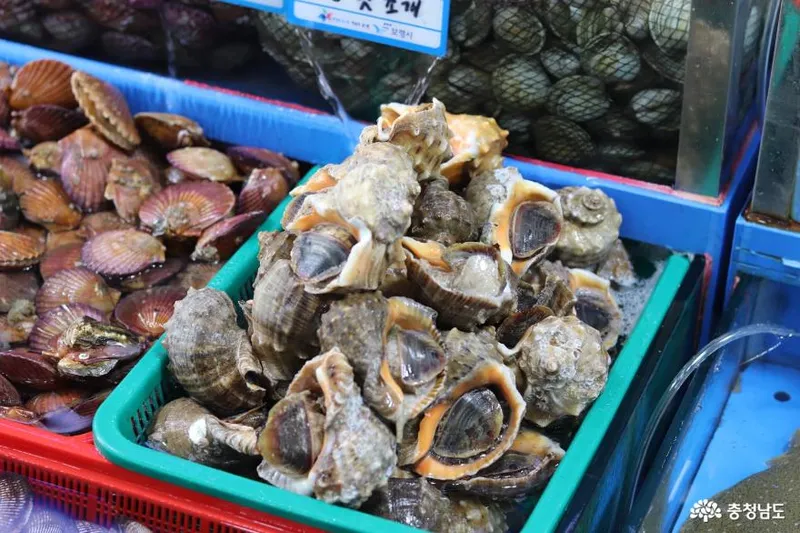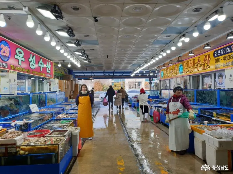 동양에서 유일한 조개껍데기 백사장으로 유명한 대천해수욕장에서 멀지 않은 곳에 있는 대천항 수산시장은