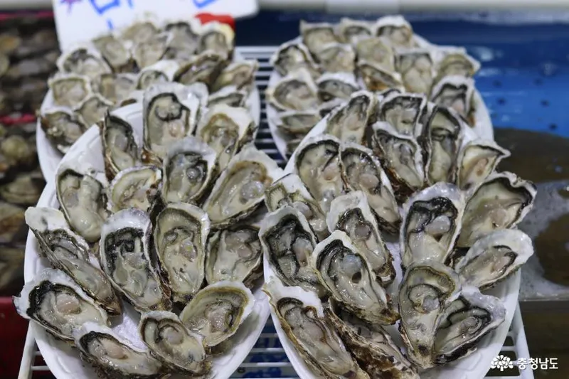 역시 수산시장이라 그런지 마트나 일반 시장에서는 보지 못했던 것들이 많이 보였고, 조개구이가 유명한 대천이라 그런지 조개구이 먹으며 봤던 조개들도 낯익었다. 예쁘게 진열된 굴까지!