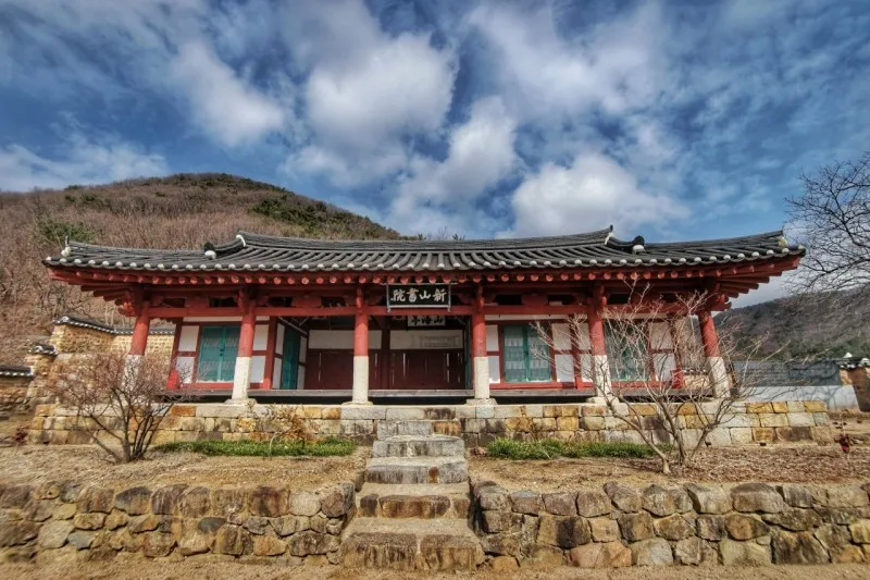 1593년(선조 21)에 서원으로 착공했으나 왜란으로 중지된 것을 1609년(광해군 1)에 완성하여 신산서원이라고 하였고 같은 해에 ‘신산(新山)’이라고 사액되었다지요.
