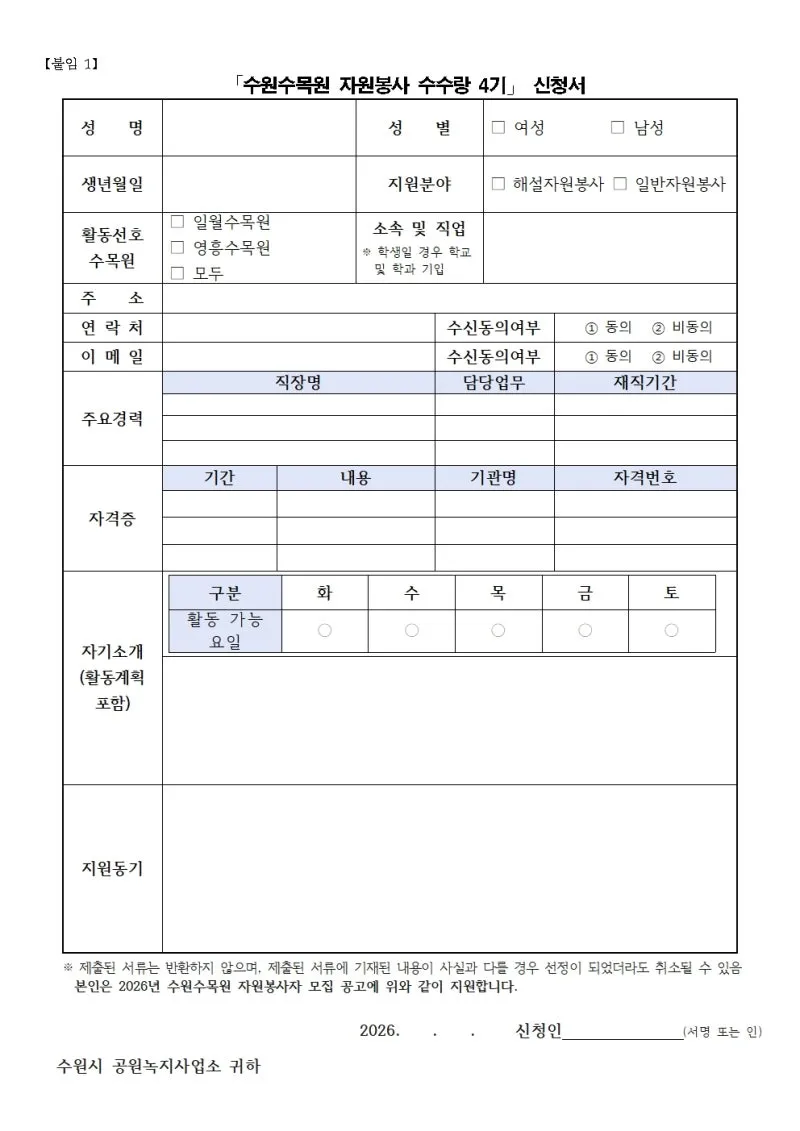 🌳수원수목원 자원봉사자 수수랑 4기 모집ㅣ~2.13.(금) 18:00
