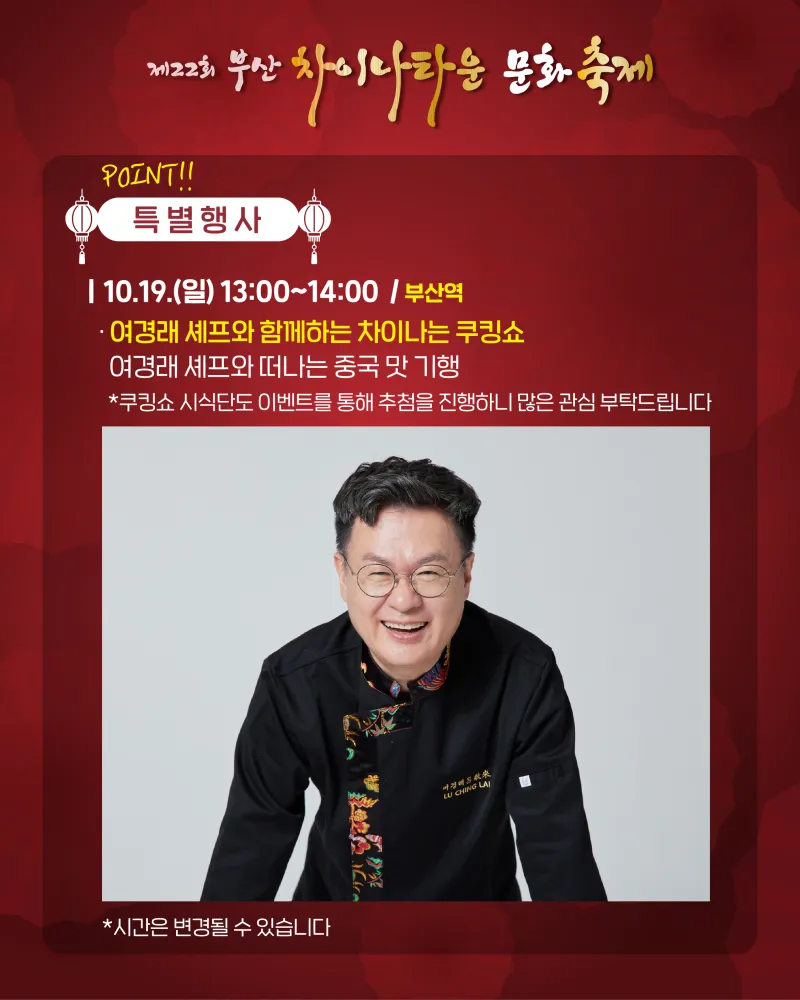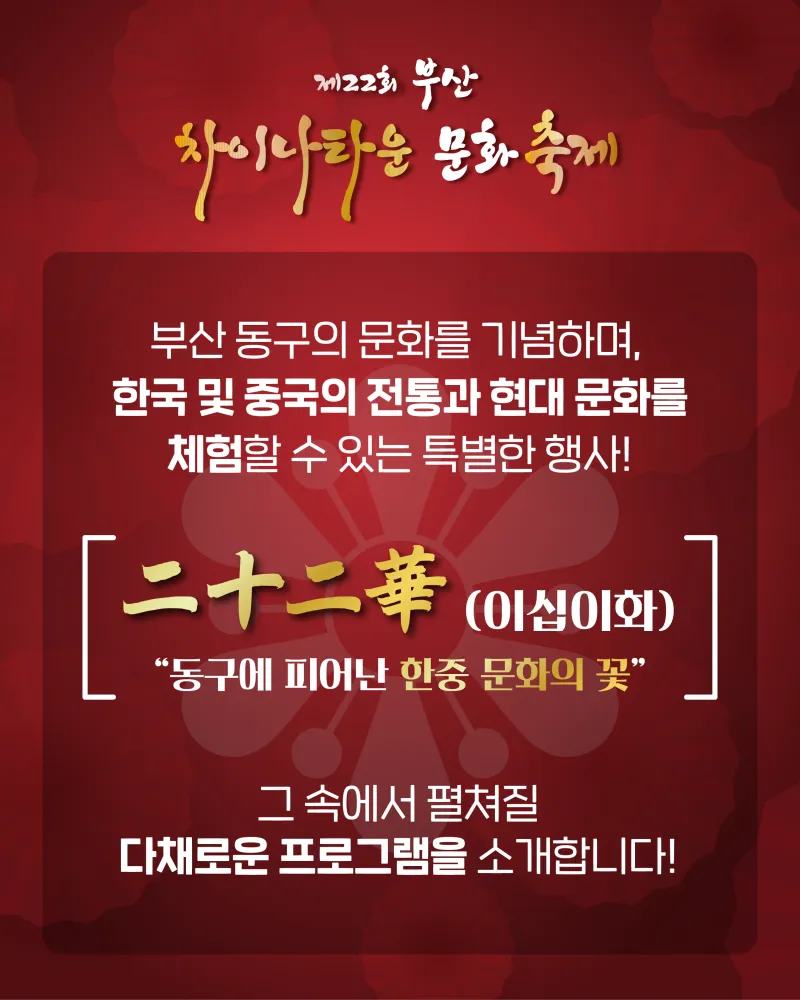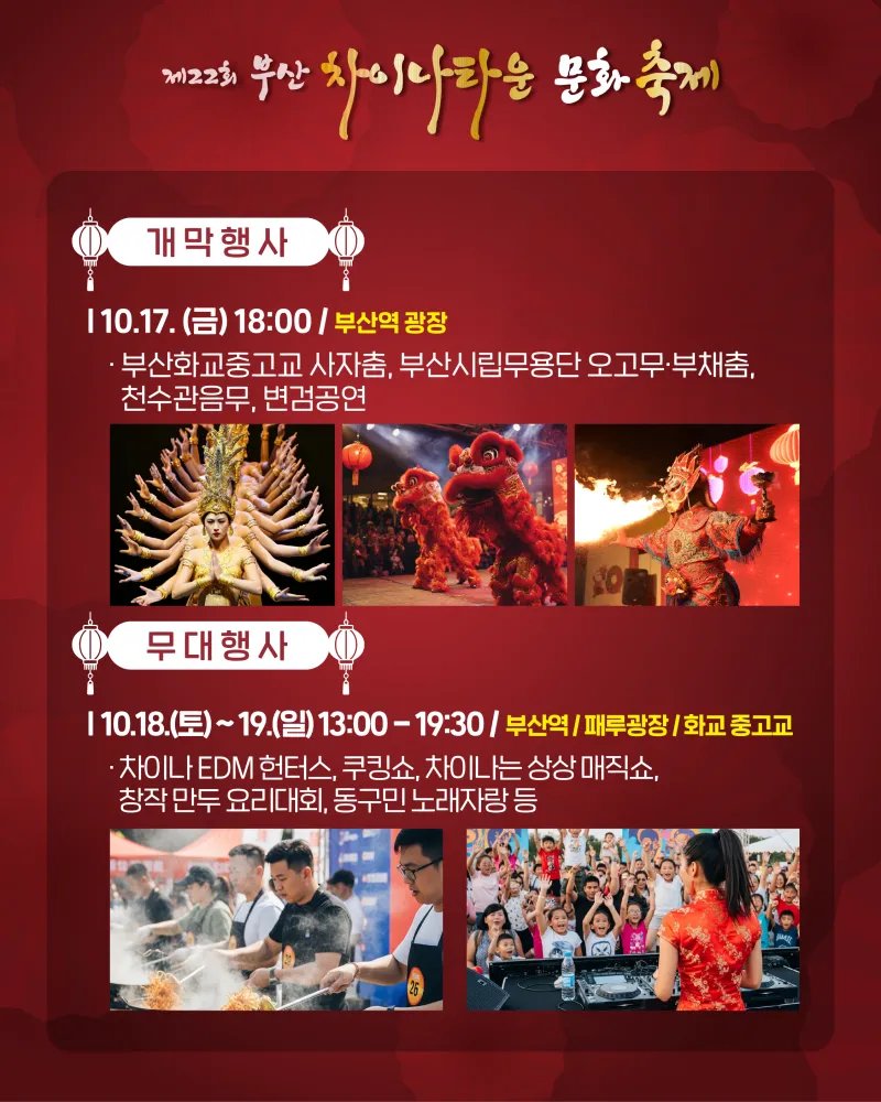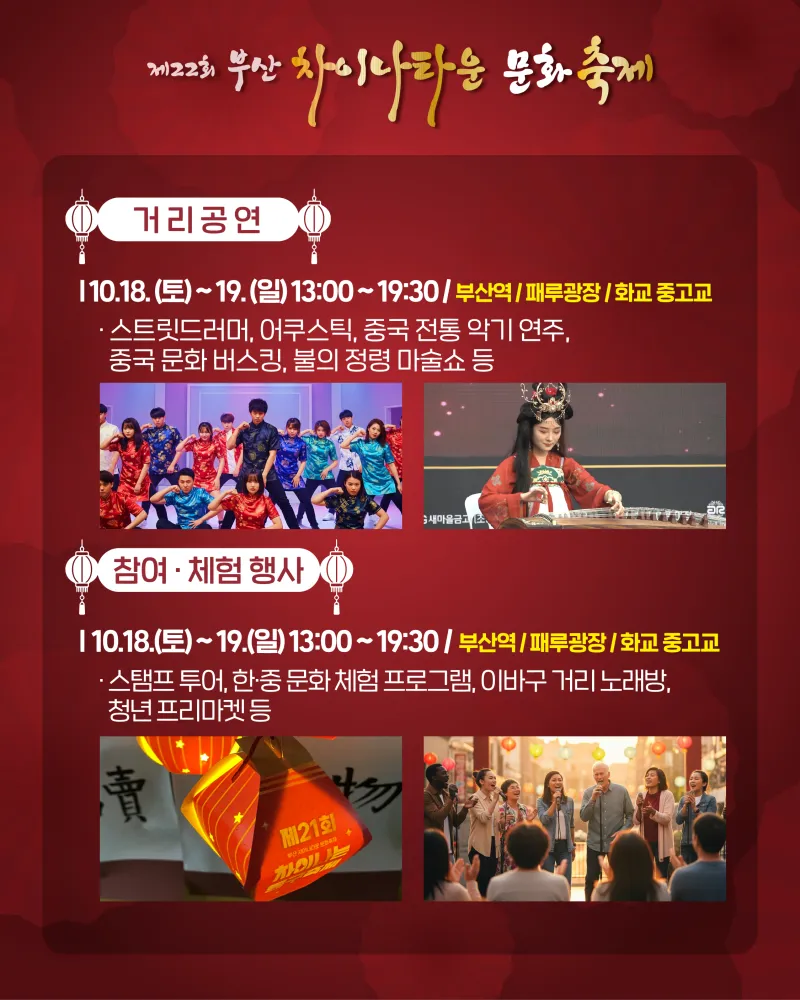 ✔️ 10/18(토)~19(일) 13:00~19:30, 부산역 / 패루광장 / 화교 중고교