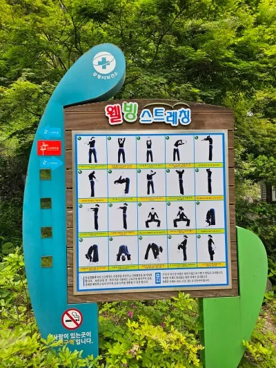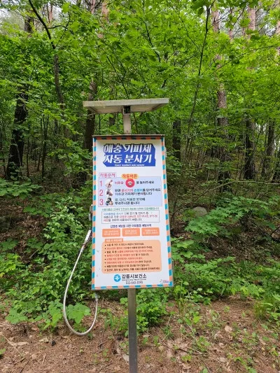 저는 대관령 치유의 숲 초입에서 출발하였습니다. 이곳에 주차장 및 화장실, 스트레칭 존 그리고 해충 기피제 자동분사기가 근처에 함께 위치하니, 이곳에서 준비하시고 출발해 보세요!