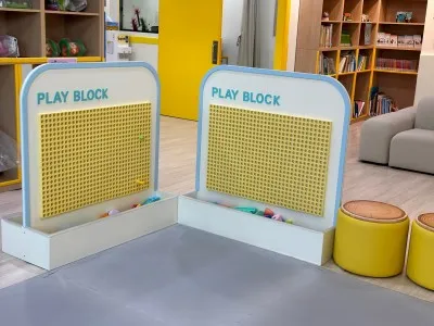 아이들이 신나게 놀 수 있는 미끄럼틀과 play block도 마련되어 있어요.