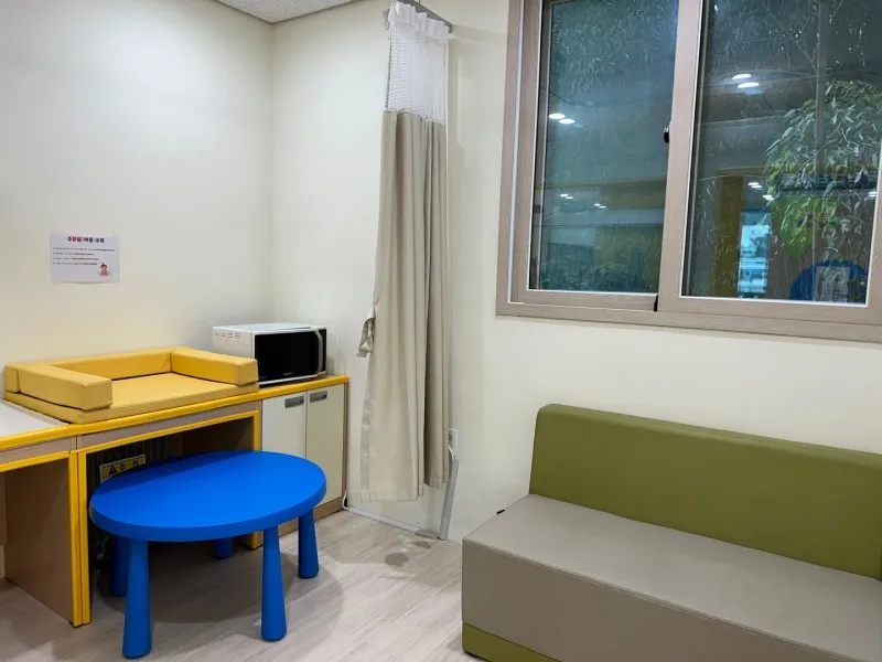 수유실에는 전자렌지가 준비되어 있어서, 아이들 이유식 먹이기에도 용이할 것 같아요. 인테리어를 참 멋지게 해놨네요!