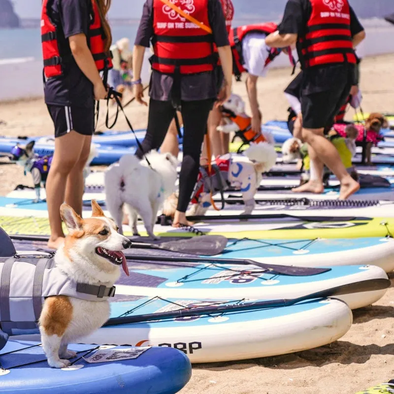 반려견 동반 패들보드 체험에는 SUP DOG 강습을 비롯한 견주 및 반려견 구명조끼(사이즈가 한정적이라 필요시 개인 지참 가능), 패들보드 장비, 10분 안전교육, DOGA(Dog Yoga) 프로그램, 음악캠프(토 18:30-19:30), 참가자 전원 후원사 상품 선물이 포함되어 있습니다.