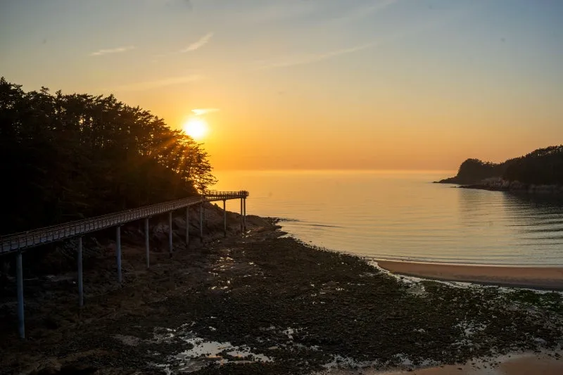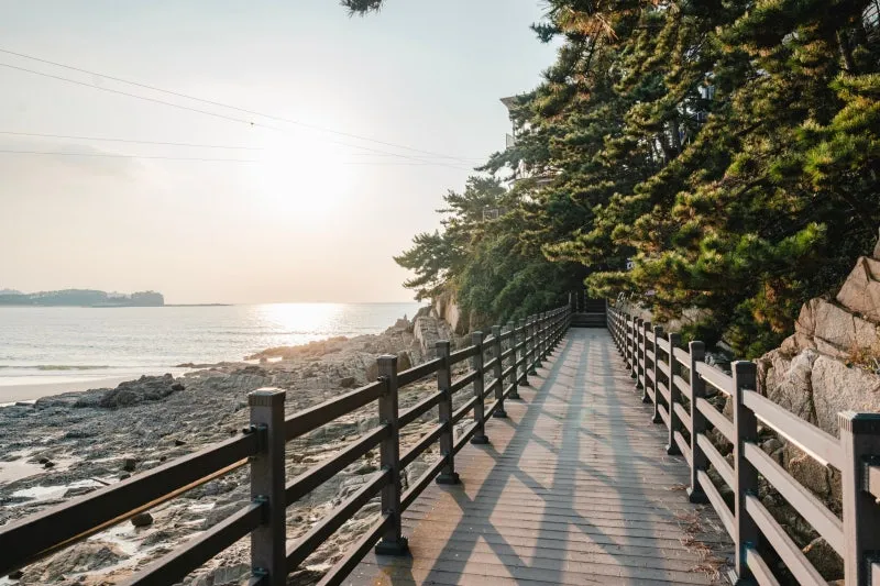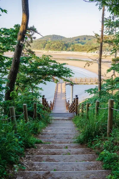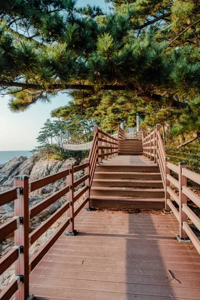 만리포해수욕장과 함께 가기 좋은 애견동반 코스인 뭍닭섬 산책로는 해수욕장 오른 끝자락에 울창한 소나무 숲으로 뒤덮인 해안 데크길로 푸른 서해 바다와 청량한 소나무 숲을 번갈아 걸으며 천리포해수욕장까지 한 바퀴 돌아볼 수 있는 산책 코스입니다.
