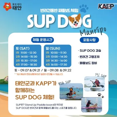 태안 반려견동반 패들보드 체험 만리포 SUP DOG 참가신청