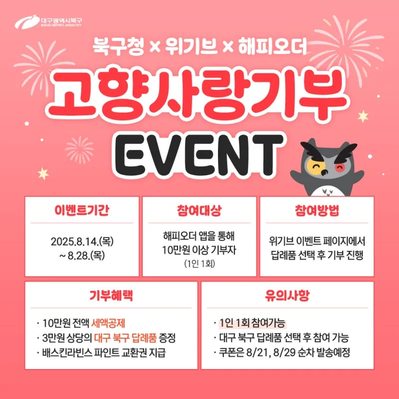 [북구청 X 위기브 X 해피오더] 고향사랑기부 기부 참여 이벤트!