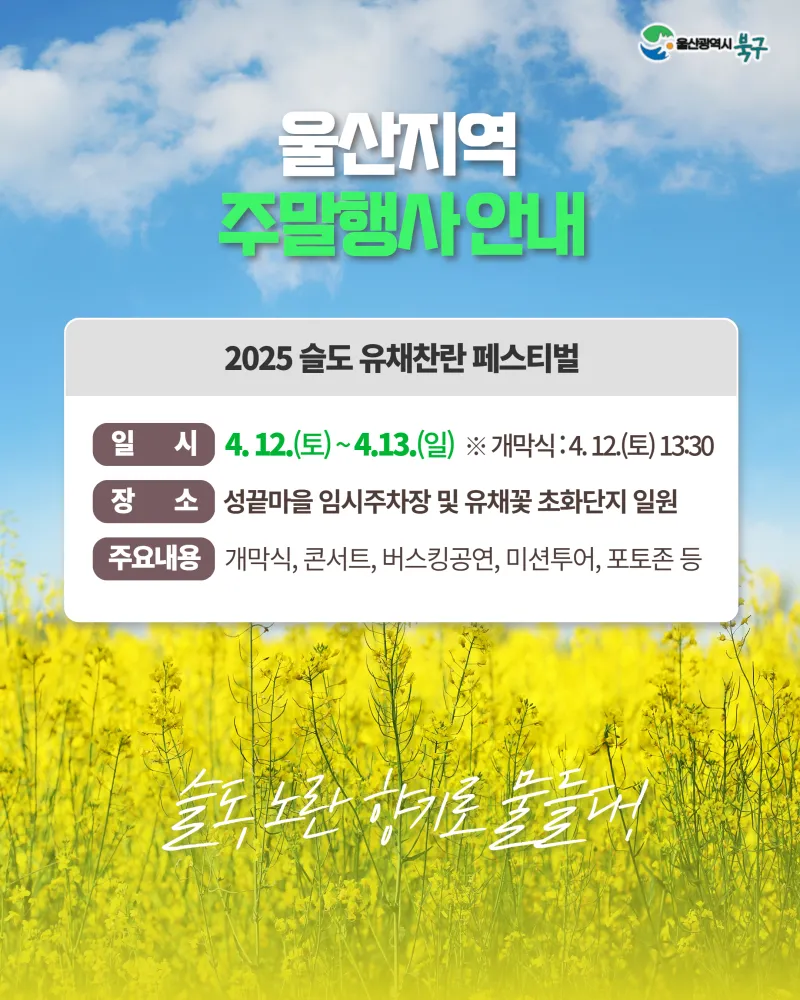 #울산 #울산북구 #울산축제 #울산주말행사 #주말행사 #울산가볼만한곳 #슬도 #유채찬란 #슬도유채꽃