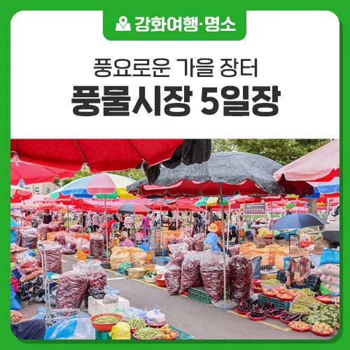 오늘은 강화도에서 특별한 가을 여행을 즐길 수 있는 곳, 바로 강화 풍물시장 5일장을 소개해 드리려고 해요. 강화도는 역사와 자연이 어우러진 멋진 여행지이기도 하지만, 매달 2일과 7일에 열리는 전통 시장인 5일장 덕분에 더욱 풍요롭고 다채로운 경험을 할 수 있었는데요. 특히 가을에는 제철 농산물과 지역 특산물들이 가득해 볼거리, 살거리, 먹거리가 정말 풍성했답니다.