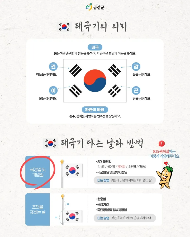 ▪️8월 15일 광복절 태극기 게양법
