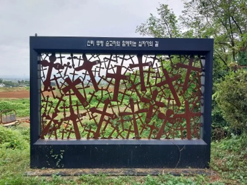 무명순교자의묘는 신리를 중심으로 주변의 순교역사와 관련이 깊은 무덤으로 옛날 신리에는 400여명이 사는 교우촌이었습니다. 밀양손씨 집안이 주류를 이루고 다른 성씨를 가진 신자들이 함께 거주한 곳이었어요.