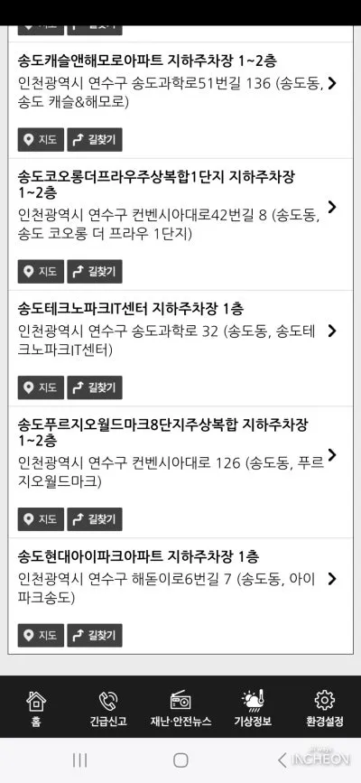 대피소 위치 확인 및 비상시 대피 경로 숙시