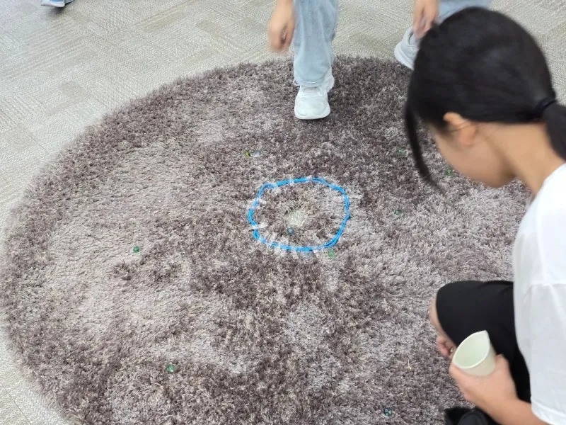 바닥에 사각으로 가이드 라인을 그려놓고 그 안에서 놀이가 이루어졌는데요,
