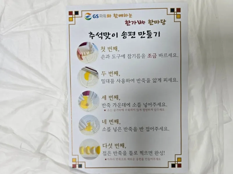 참여자들은 순서지를 보며 열심히 송편을 만듭니다.