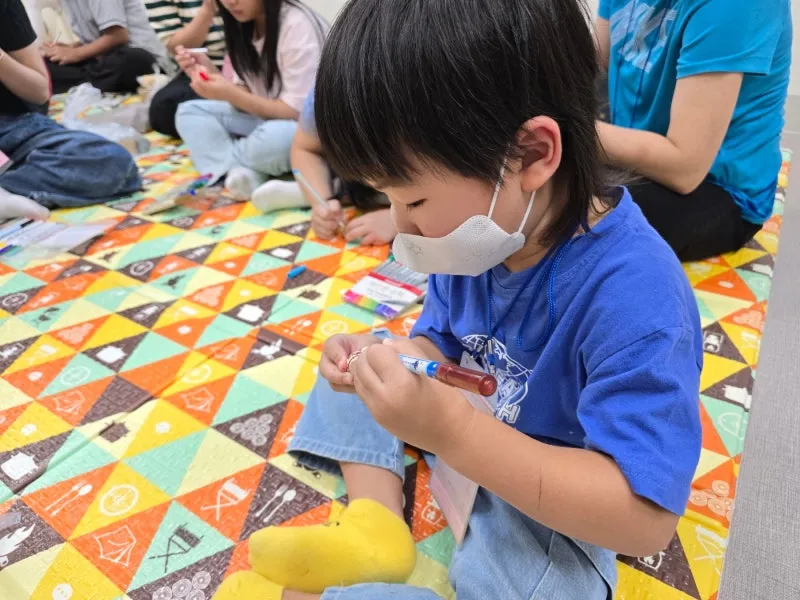 팽이에 색칠을 하는 어린이의 진지한 모습에서 사뭇 장인의 포스가 느껴집니다.