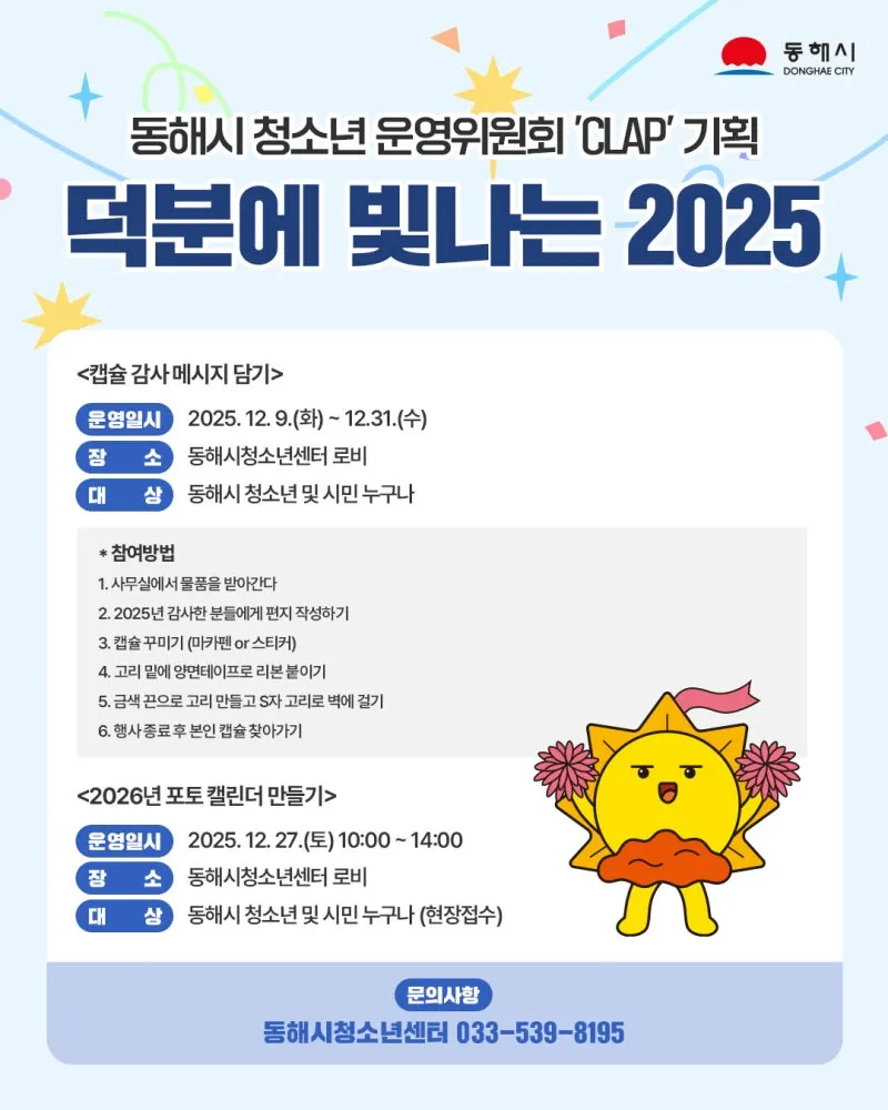 동해시 청소년 운영위원회 'CLAP' 기획 ✨️덕분에 빛나는 2025✨️