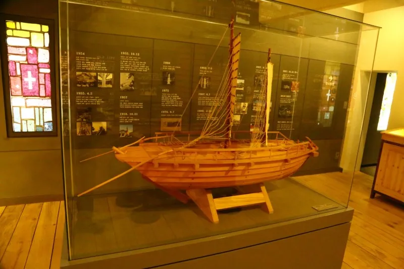 다음 전시관을 들어서면 중앙에 김대건신부가 타고 왔던 라파엘호 모형이 전시되어 있고