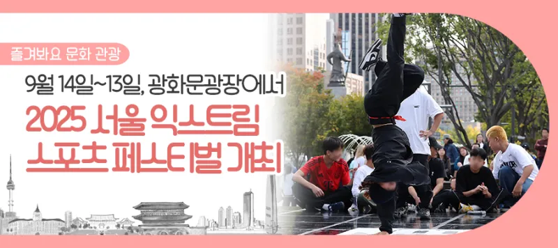 도심 속 색다른 글로벌 스포츠 축제, ‘2025 서울 익스트림 스포츠 페스티벌’이 13일~14일 이틀간 광화문광장에서 시민을 맞이한다. 올해 행사는 젊은 세대에 인기 있는 ▴브레이킹 국제대회 ▴BMX 데몬쇼를 중심으로 펼쳐진다.