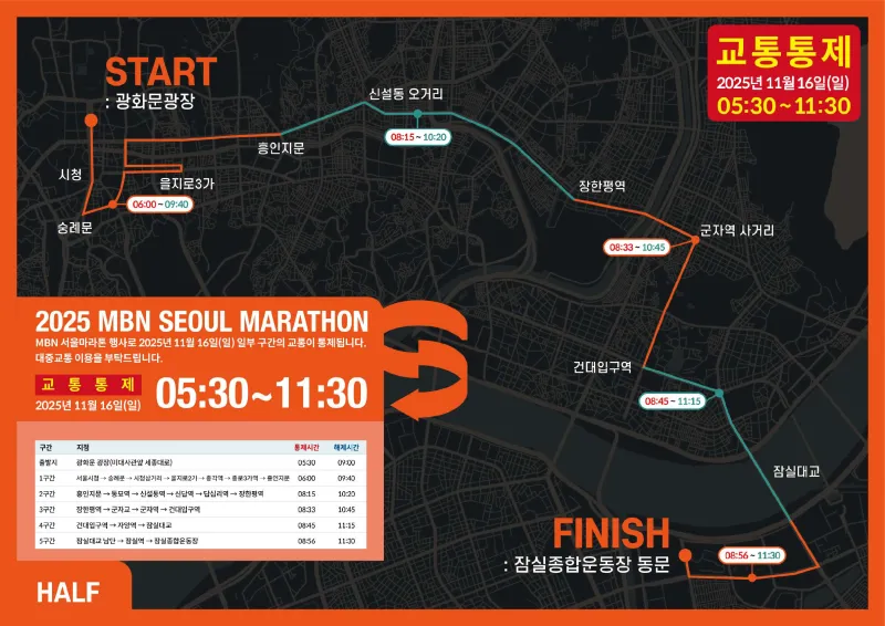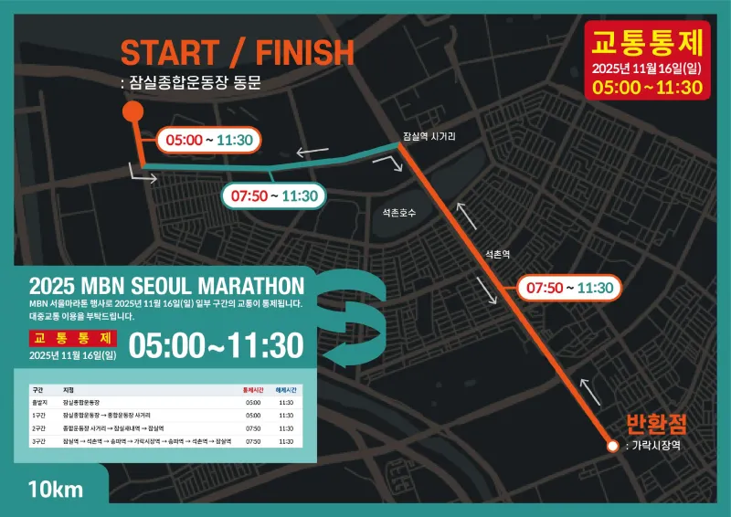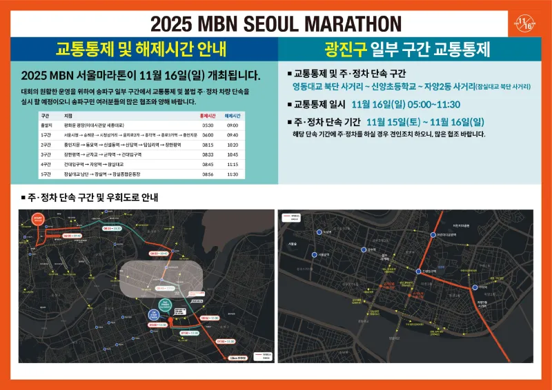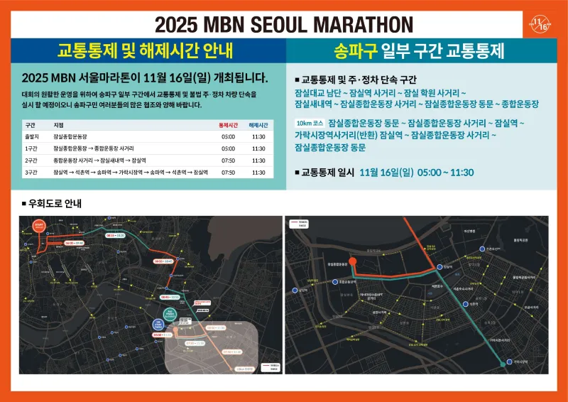 2025 MBN 서울 마라톤 송파구 교통통제 안내