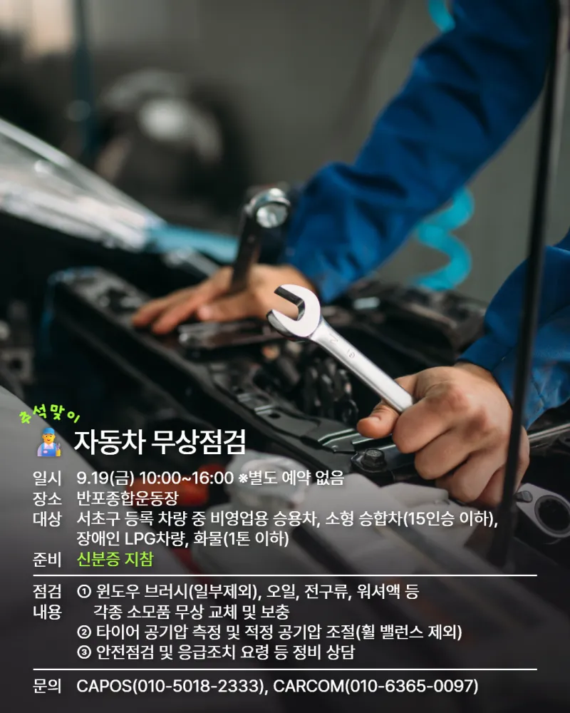 추석맞이 자동차 무상점검을 실시해요.