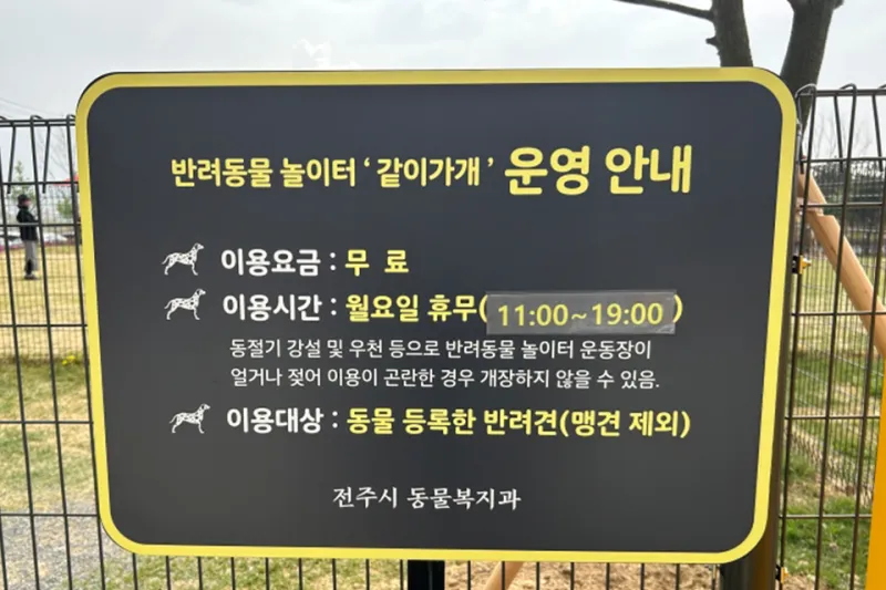 무료 내장형 동물등록을 마치고 같이가개에서 산책까지 즐기기! 정말 완벽한 하루가 될 듯하네요. 반려동물이 있는 전주 시민들의 많은 관심과 이용 부탁드리겠습니다.
