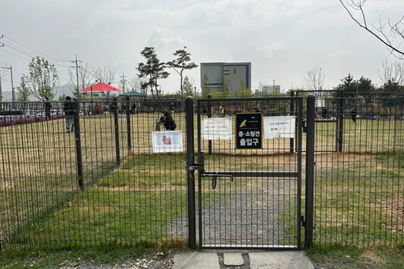 같이가개에는 펜스가 이중으로 되어 있어서 반려동물과 안전하게 놀 수 있습니다. 거기에 중소형견과 대형견 놀이터가 나누어져 있어 마음 편히 산책 가능합니다.