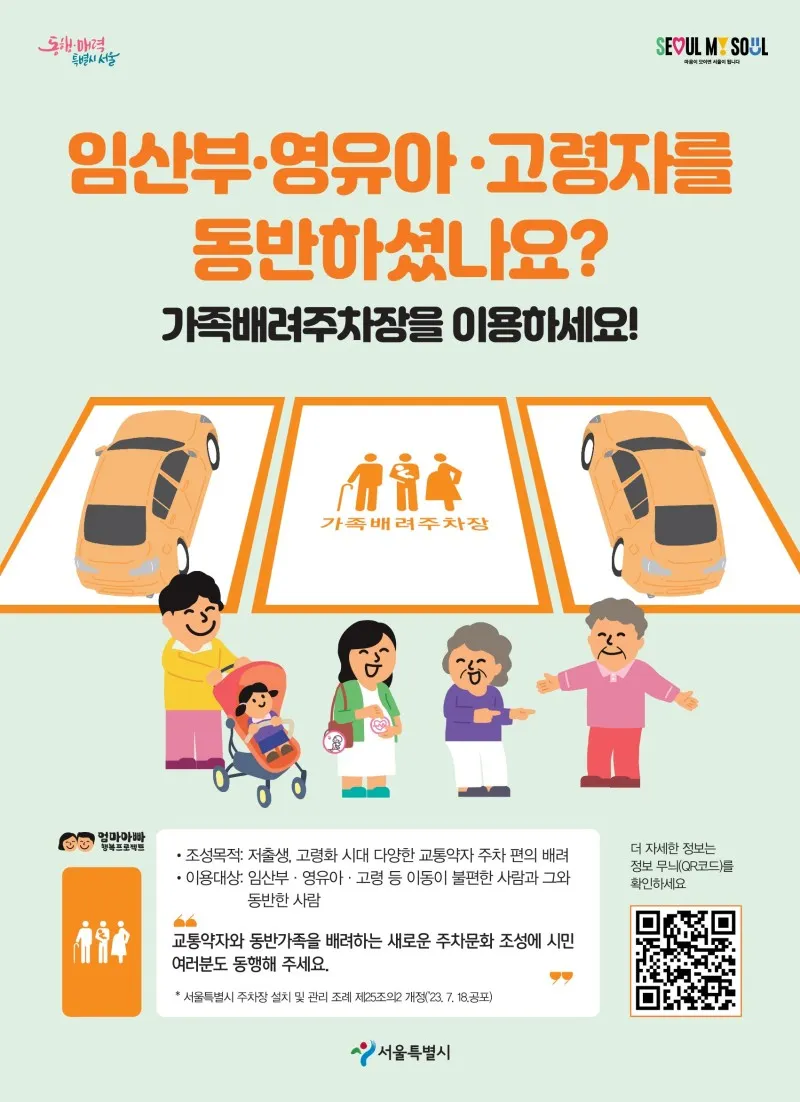 임산부·영유아·고령자를 동반하셨나요? '가족배려주차장'을 이용하세요 "이용대상, 이용요금 등"