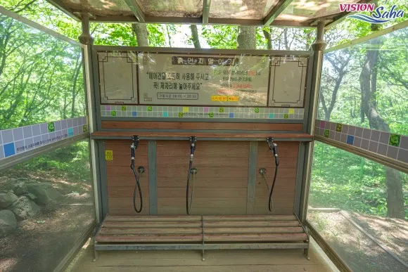 <하단 고개>의 경우 하단동과 신평동 주민분들이 이용하실 수 있는 1코스와 괴정동, 구평동, 감천동의 주민분들이 이용하실 수 있는 2코스와 3코스가 만나고 또 나뉘는 분기점인 곳인데요. 많은 주민분들이 산행을 하면서 지나는 곳이기에 '하단 고개'에는 잠시 산행을 하면서 무거워진 다리를 풀 수 있는 '휴식공간'과 댁으로 돌아가시는 주민분들을 위한 '흙먼지 털이기' 등의 다양한 편의 시설들을 이용하실 수 있도록 조성되어 있었습니다.