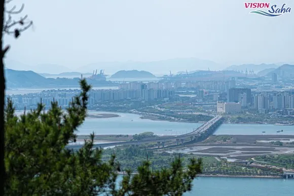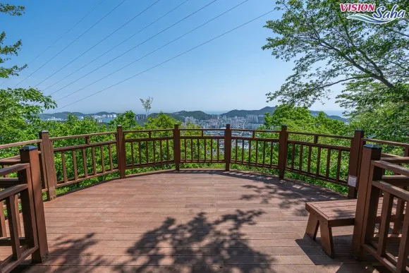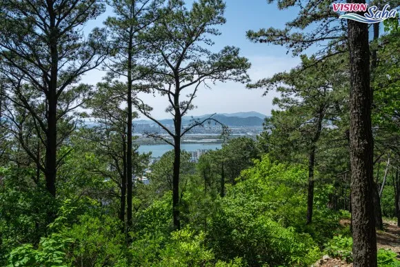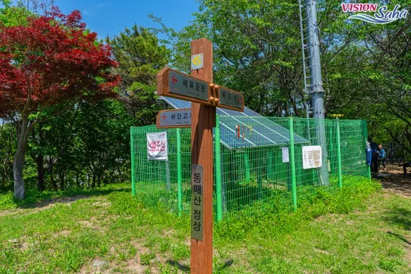 이곳 정상 전망대 이외에도, <하단 고개>에서 <동매산 정상>까지 이어지는 등산로에서도 멋진 풍경을 보실 수 있으신데요. 가깝게는 천혜의 자연을 자랑하는 을숙도를 지나 명지동과 신호동 그리고 부산신항에 이르는 '서부산의 모습'과 멀게는 거제도를 넘어 '경상남도 고성'까지 보실 수 있으시기에, 정상을 방문하셨다면 이곳 풍경도 놓치지 마시길 바랍니다.