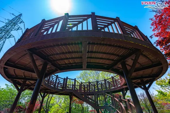 무성하게 핀 잎들로 인해 전망을 볼 수 없어 아쉬움은 들지만, 전망대 주변에 조성된 나무들이 형형색색의 나뭇잎으로 이뤄져 있어 높이가 높은 나무임에도 불구하고 보다 가까이 나뭇잎도 보고 또 만져보며 몸소 자연을 느껴볼 수 있었기에 큰 위안이 되어주기도 했습니다.