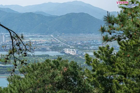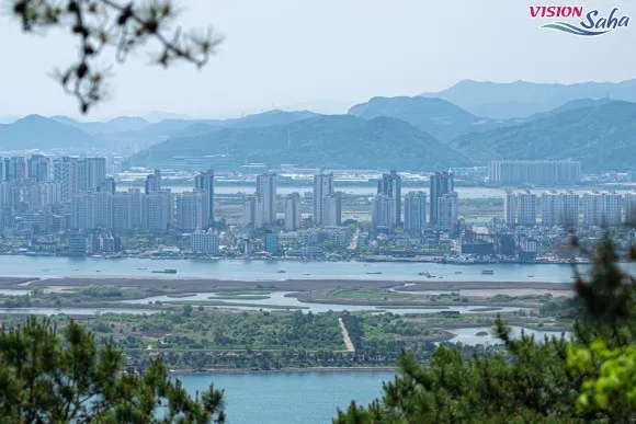 등산로 중턱에서 볼 수 있는 을숙도 방면 풍경