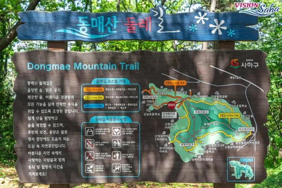 사하 등기소에서 시작해 하단 고개를 지나 다시 사하 등기소로 돌아가는 '둘레길 1코스'와 동매산의 산기슭을 따라 배고개 사거리에서 하단 고개를 잇는 산책로를 순환하는 '둘레길 2코스' 그리고 배고개에서 시작해 구평동 방면의 동매산 일대를 순환하는 '둘레길 3코스'로 이뤄진 둘레길이 조성되어 있는데요.