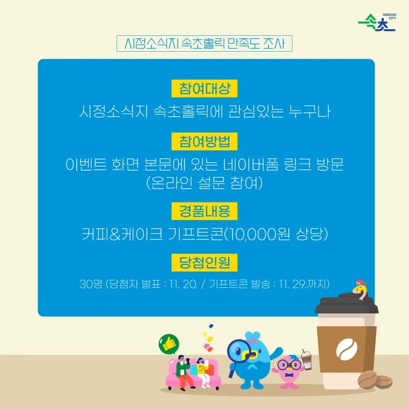 속초에 빠져! 빠져! 시정소식지 속초홀릭 만족도 조사