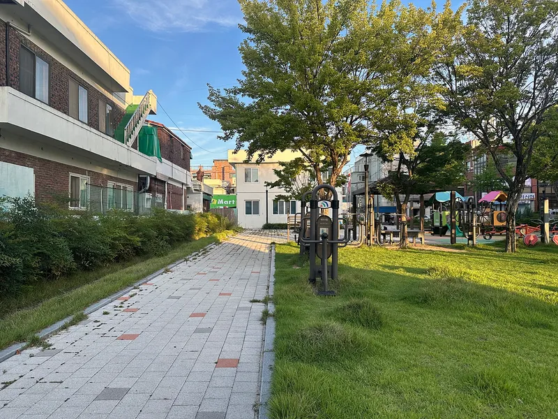 이 공원의 또 다른 장점은 운동과 휴식을 함께 누릴 수 있다는 점입니다. 새말어린이공원에는 비교적 평탄하게 정비된 산책로가 조성되어 있어, 나이 불문하고 누구나 부담 없이 걸을 수 있습니다.