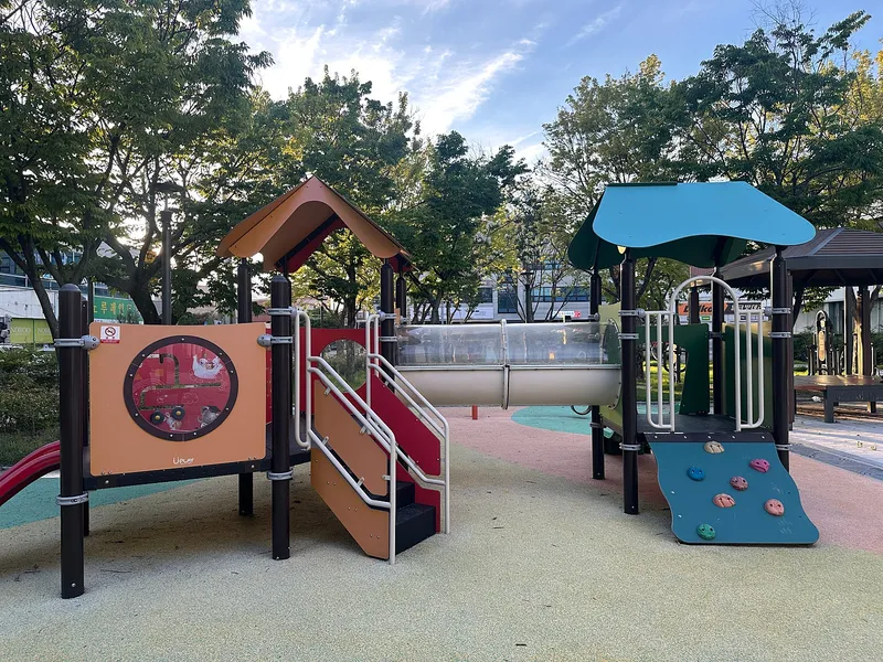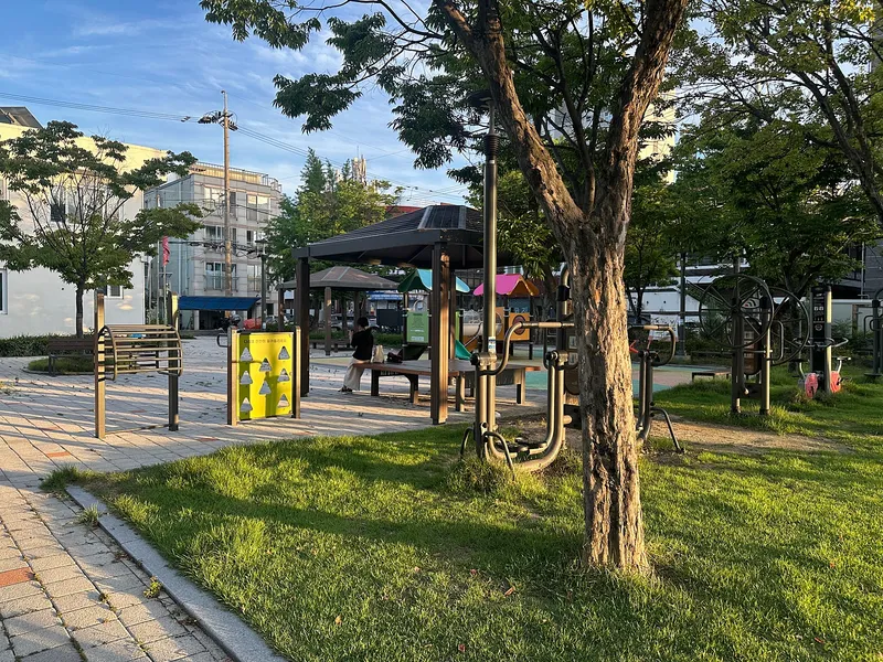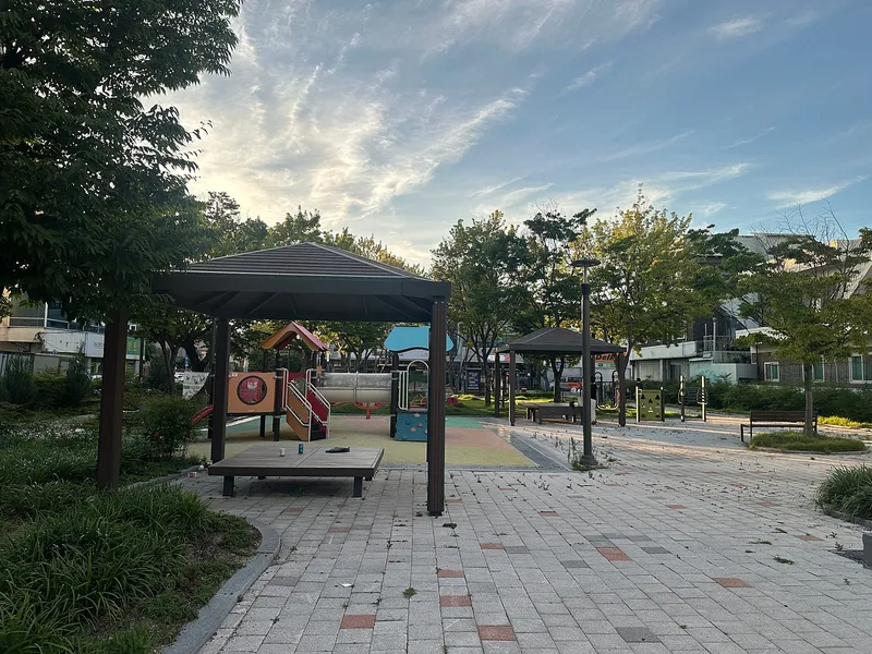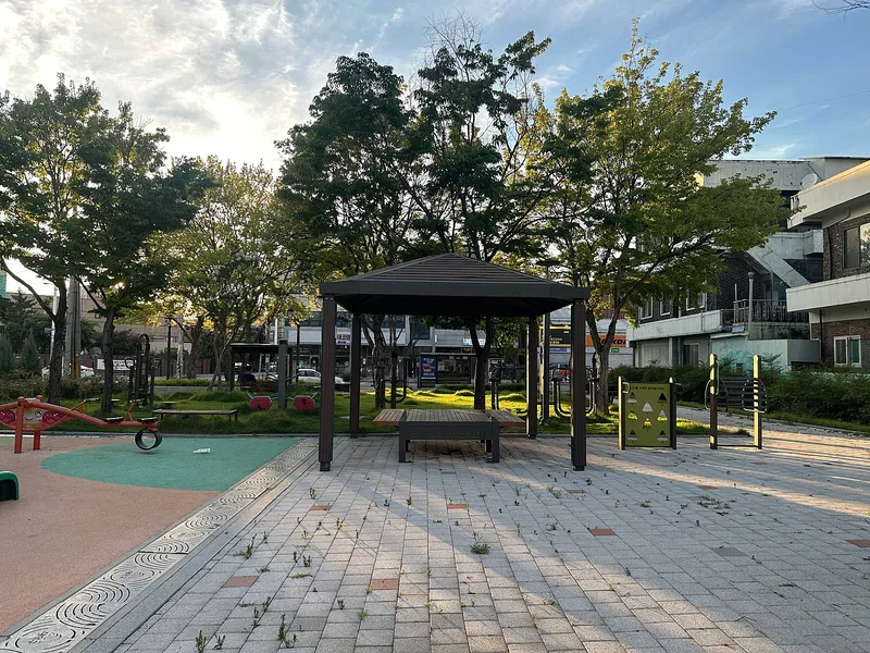 공원 안쪽에는 정자 구조물이 자리하고 있어 시민들에게 또 하나의 휴식처를 제공합니다. 정자에서는 햇빛을 피하거나 비가 내릴 때 잠시 머무르기에도 좋고, 책을 읽거나 지인과 담소를 나누기에 알맞은 공간입니다.