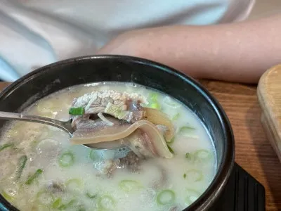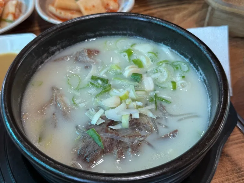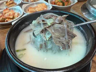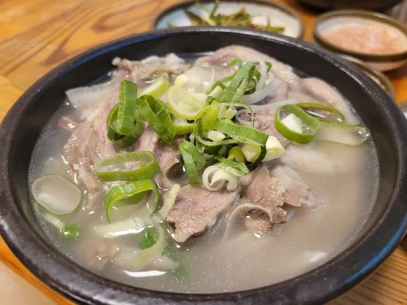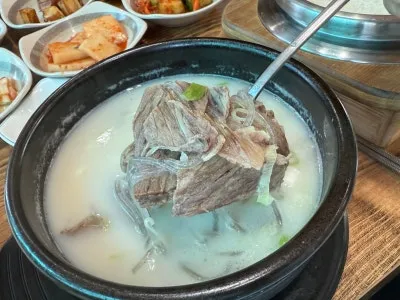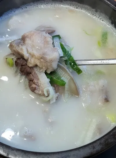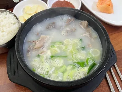 설렁탕은 국물이 뽀얗고 깊은 맛이 나요!