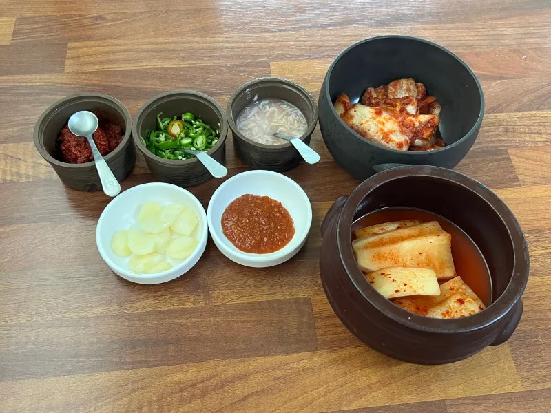 김치찌개, 두부전골, 시래기돌솥밥, 삼겹살 등 다양한 메뉴가 준비되어 있습니다!