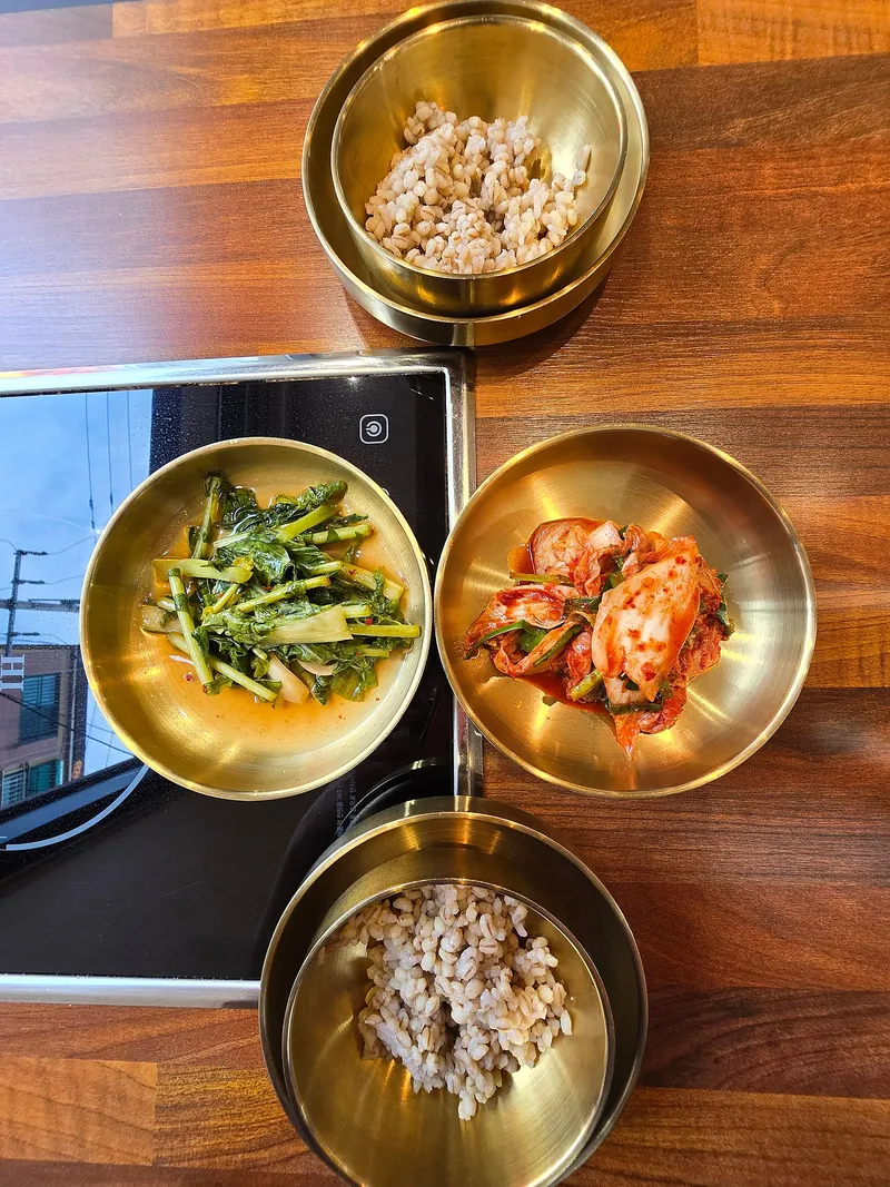 고슬고슬 보리밥이 싱싱한 열무김치랑 잘 어울려요.