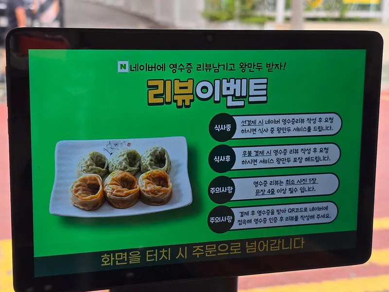 리뷰 이벤트 하면 왕만두 무료서비스 받아요.