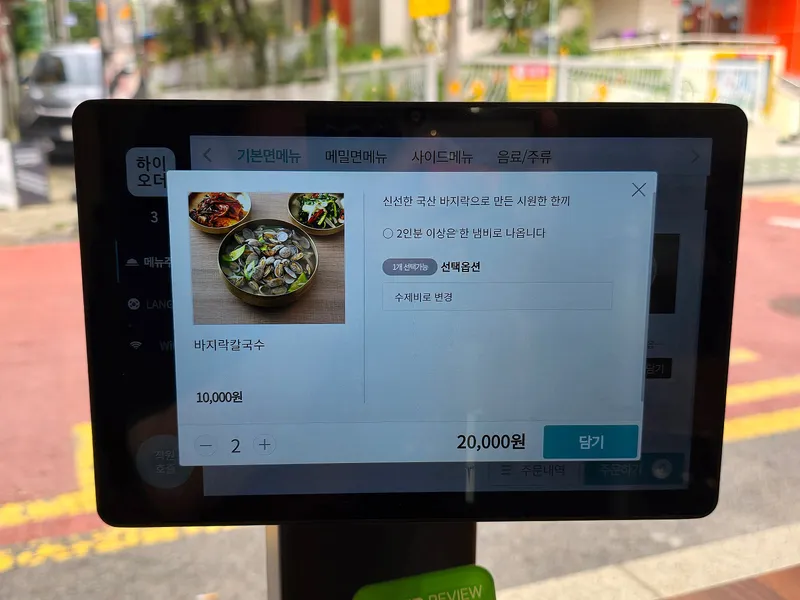 바지락 칼국수 2인분 주문했어요.