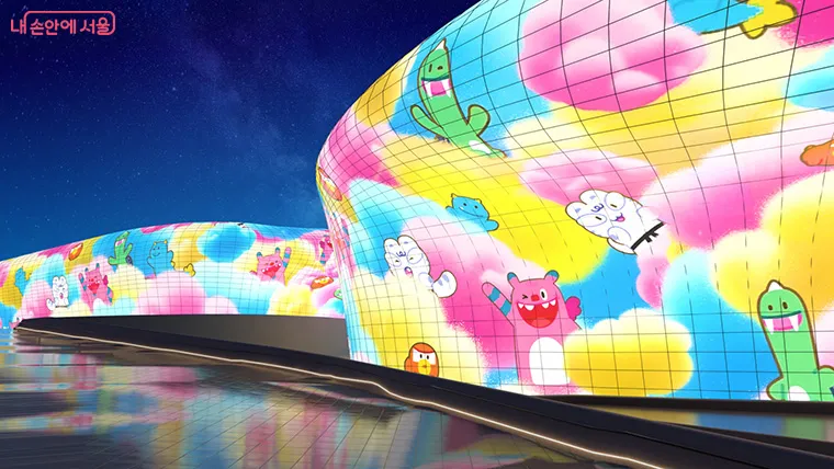 DDP 초대형 미디어파사드에 해치와 소울프렌즈 떴다! 희망 메시지 전달