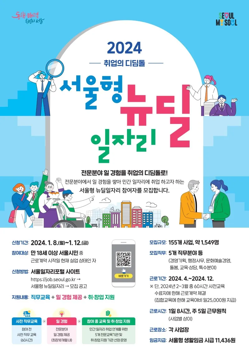 「2024 서울형 뉴딜일자리 사업」 참여자 모집 홍보