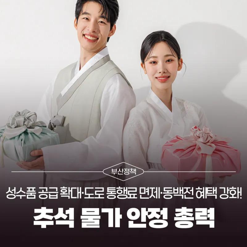 추석 물가 안정 총력 - 성수품 공급 확대·도로 통행료 면제·동백전 혜택 강화!