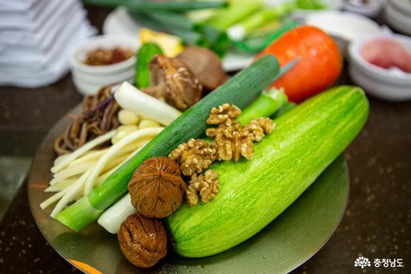 고영숙 조리기능장이 알려주는 색다른 추석 음식 재료는 천안 북면, 동면, 광덕면, 풍세면, 성환, 입장 등에서 재배되는 표고버섯과 새송이버섯, 병천면에서 재배되는 하늘그린 오이, 호두 시배지 광덕에서 나오는 호두 그리고 유기물 함량이 풍부한 천안흥타령쌀을 활용해 만드는 음식입니다.
